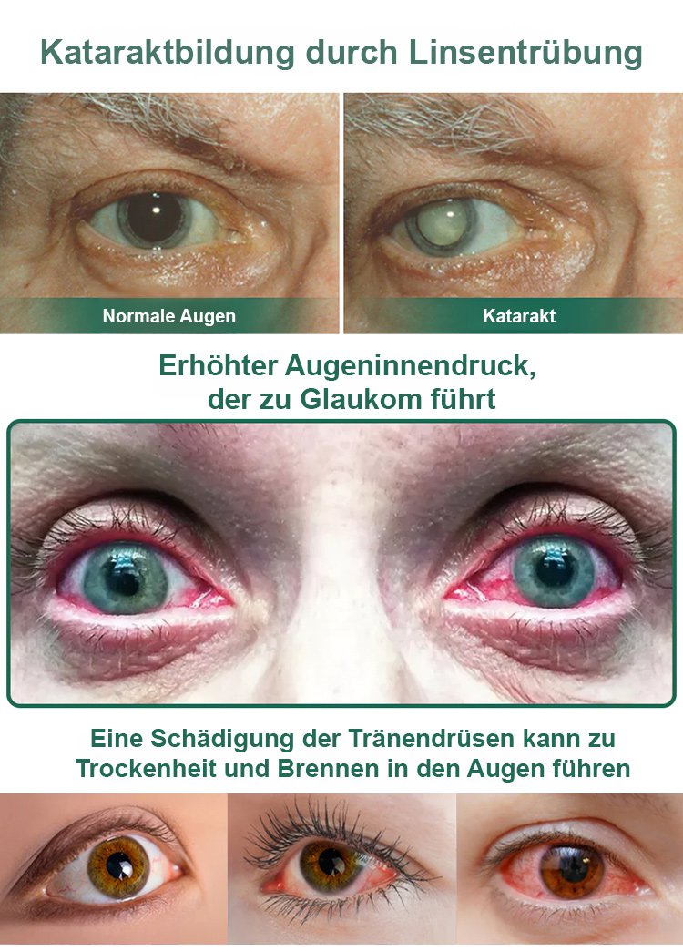 Eine Abschiedsflasche mit verschwommenem Sehvermögen, zwei Abschiedsflaschen mit Katarakt, drei mit völlig normalem Sehvermögen.