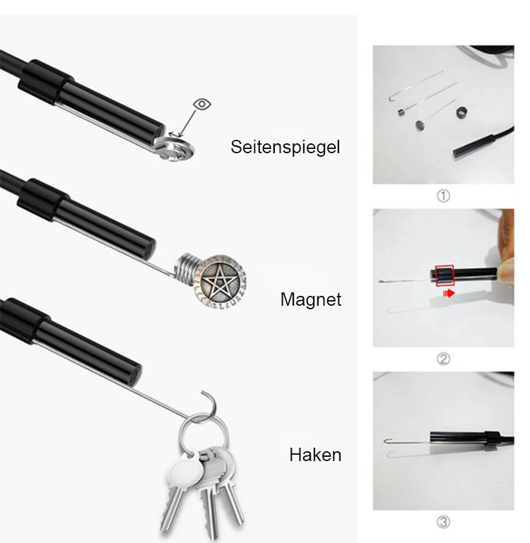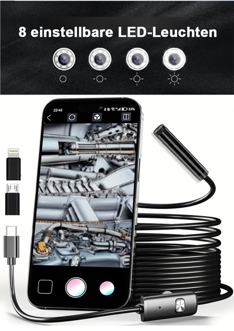 Industrieller verstellbarer Smartphone-Endoskop mit 8 LED-Lichtern und HD-Auflösung